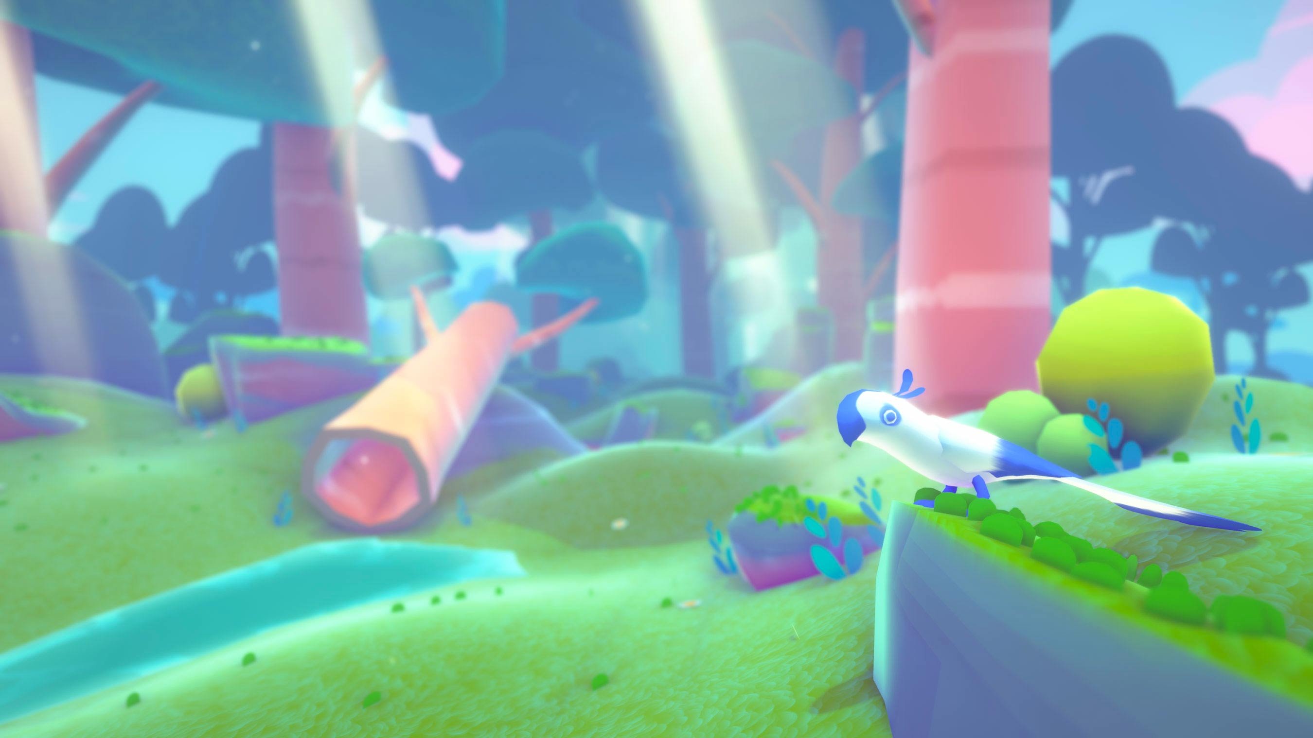 The art style is inclusive and playful in order to appeal to as many people as possible. The player navigates a world defined by sweeping air currents and flowing graphics over a terrain sculpted by rivers and populated with lush foliage beneath a sky of swept clouds. Enhancing a gliding sense of movement, even the creatures in this world are sleek and dynamic.