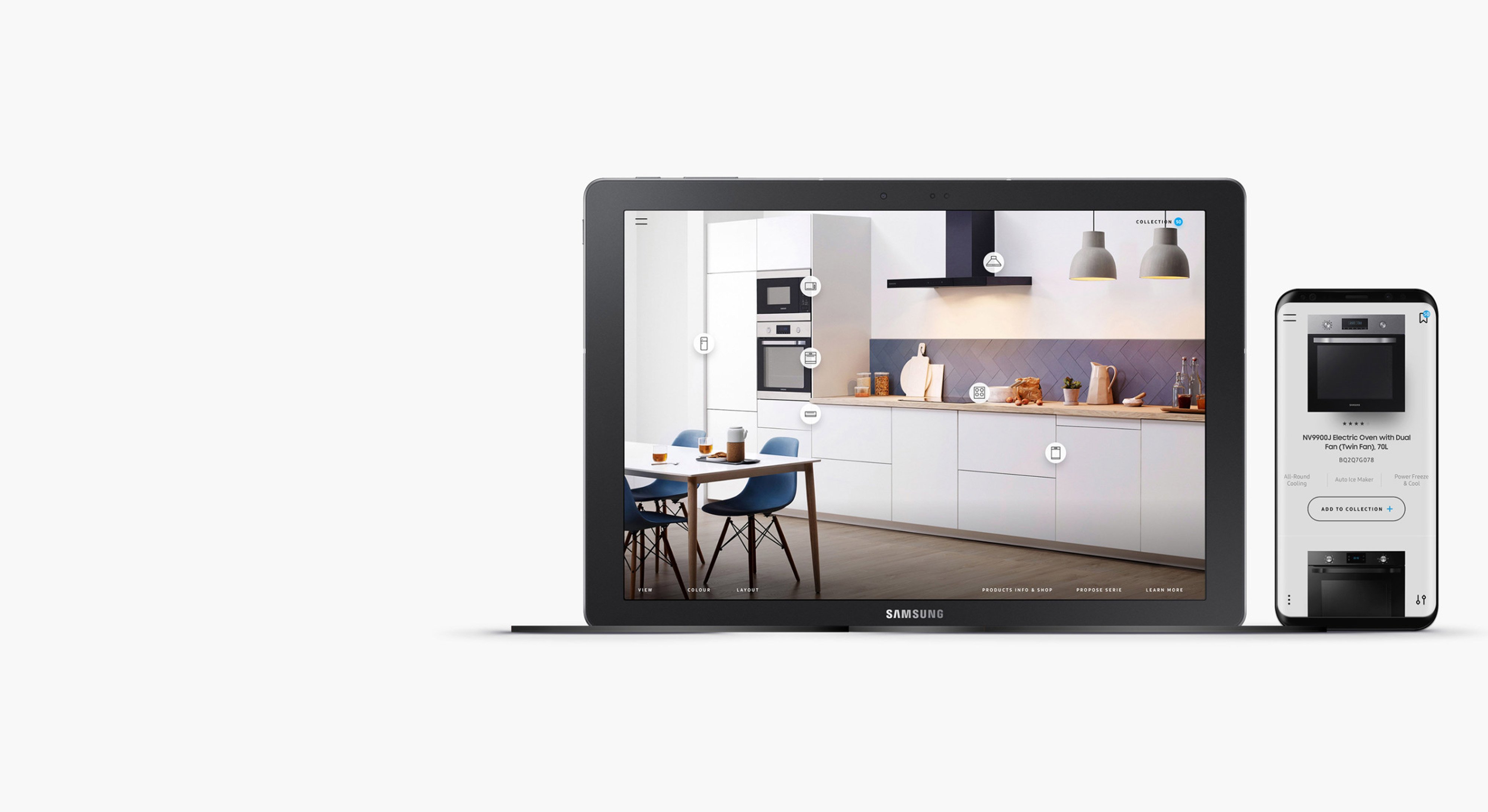 As one of the leading Consumer Electronics brands of the world, Samsung makes an astounding variety of products. Most people in Europe know them for their Smartphones and TVs, but fewer know them for their home appliances or their built-in kitchen solutions. Samsung reached out to us as part of a new European market focus. They wanted to create a digital experience to showcase its products and innovative solutions. We teamed up with them to create a useful and immersive tool to explore their built-in kitchen appliances and design. A deeper look at the technical set up can be found here.